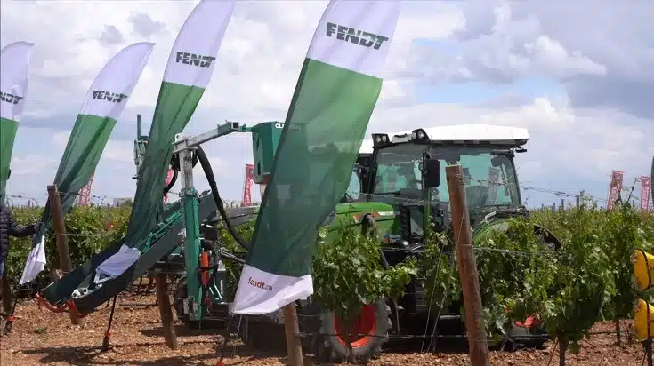 Pero no todo se coció en la parcela de recolección de Fendt, en una zona vitivinícola en España como Rueda, Fendt mostró en el área de viña 2 unidades Fendt 210 P Vario.