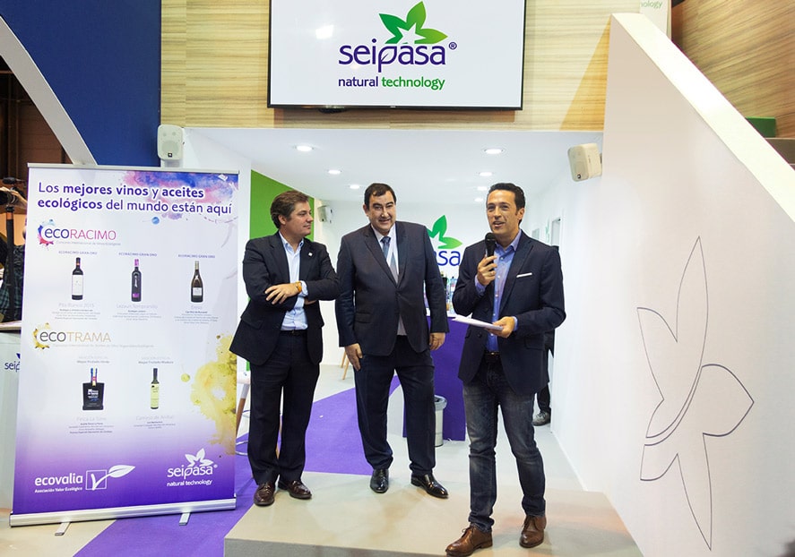 El estand de Seipasa en Fruit Attraction también ha sido escenario del acto de reconocimiento a las bodegas y almazaras ecológicas premiadas en Ecotrama y Ecoracimo, los Concursos Internacionales de Aceite Virgen Extra Ecológico y Vino Ecológico organizados por Ecovalia y patrocinados por Seipasa. Las bodegas Verderrubí (Valladolid), Lezaun (Navarra) y Can Rich de Buscatell (Ibiza), junto con las almazaras Finca La Torre (Málaga) y Los Barbechos (Albacete), han recibido una distinción como ganadoras de estos dos certámenes internacionales.